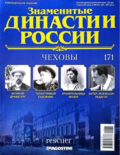 ![]() Название: Знаменитые династии России Номер: 171. Чеховы Жанр: Журналы, история, биографии Издатель: Де Агостини Год: 2017 Формат: PDF Страниц: 32 Описание: Имя Антона Павловича Чехова, наряду с Толстым и Достоевским, символизирует для всего мира русскую литературу. Имя его племянника Михаила Чехова точно так же известно всем поклонникам театра. Родной брат великого драматурга Николай был талантливым художником и дружил с Левитаном и Шехтелем. Другой брат Александр тоже отличался многогранностью талантов. А ведь всего три поколения назад Чеховы были простыми крепостными... Примеры страниц | |
